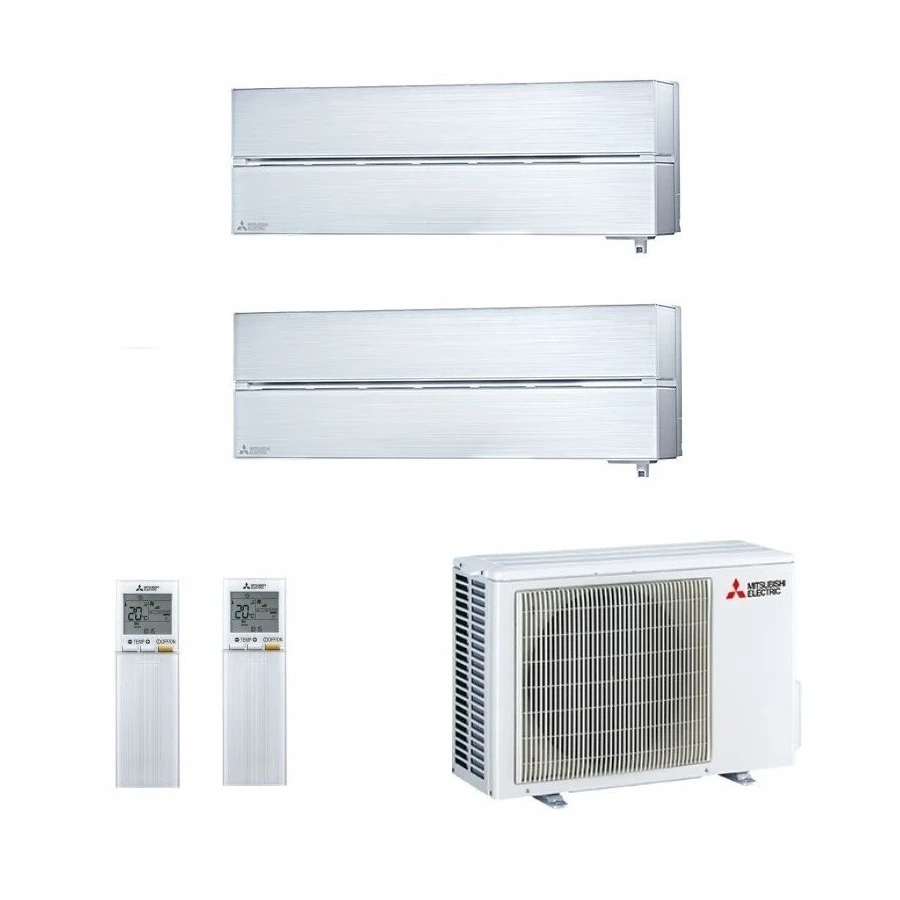 Climatizador Mitsubishi Dual Split Serie Kirigamine Style Blanco Perla WiFi 9000+9000 Btu calefacción con bomba de calor con tecnología inverter de bajo consumo energético Función deshumidificadora, purificación del aire con eliminación de virus y bacterias.