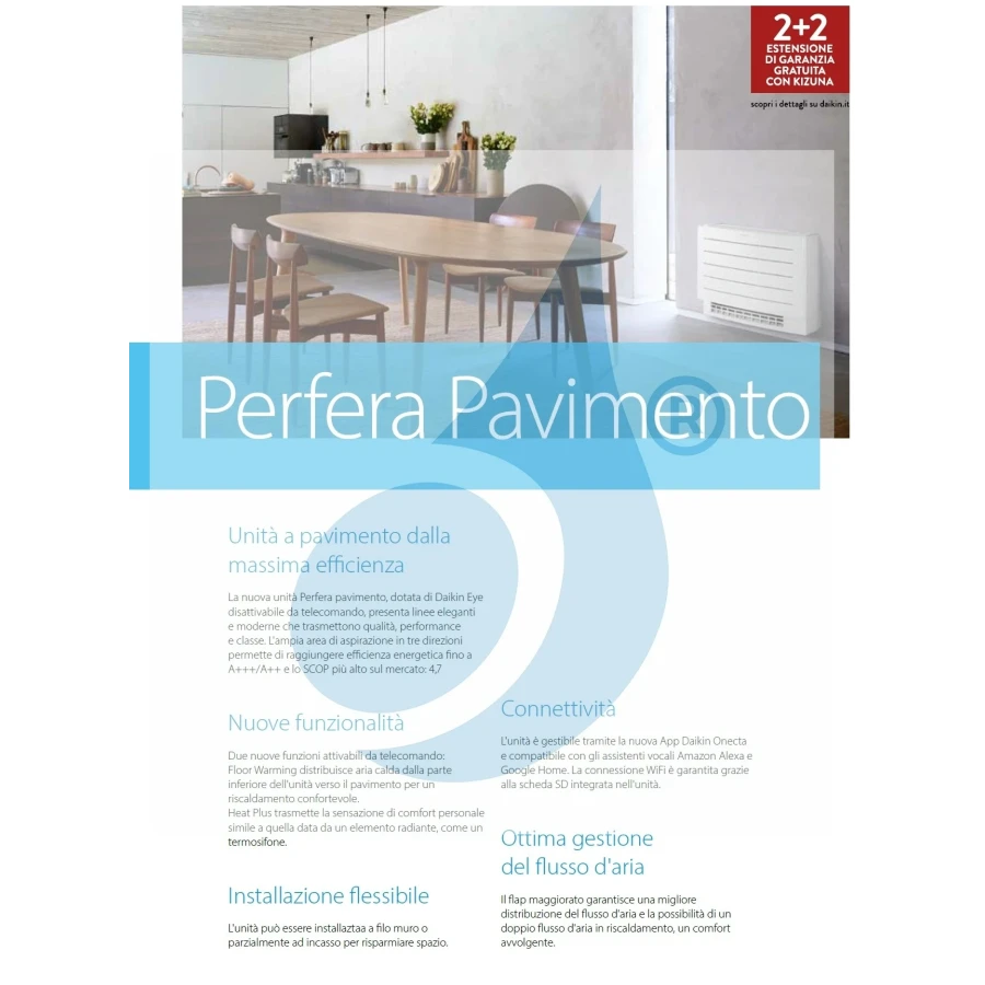 Climatizador Daikin Mono Split serie FVXM-A WiFi 9000 Btu calefacción con bomba de calor con baja absorción de corriente en clase energética alta ideal para áticos o instalaciones debajo de ventanas, nuevas funciones Floor Warming y Heat Plus