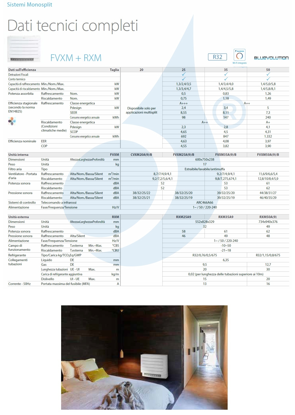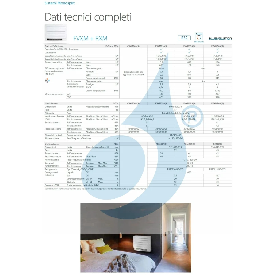 Climatizador Daikin Mono Split serie FVXM-A WiFi 12000 Btu calefacción con bomba de calor con baja absorción de corriente en clase energética alta ideal para áticos o instalaciones debajo de ventanas, nuevas funciones Floor Warming y Heat Plus