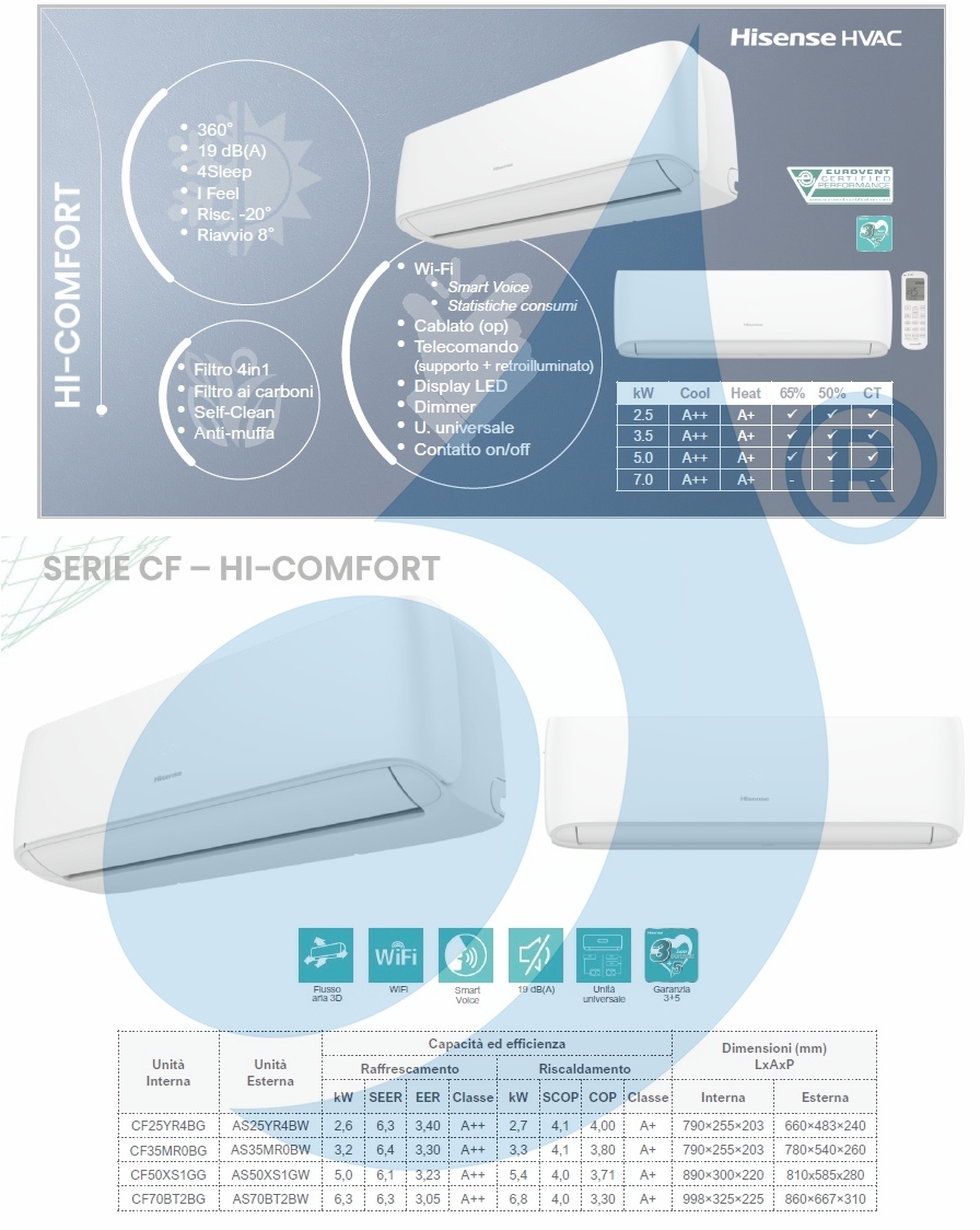 Hisense Mono Split 18000 Btu CF50XS1GG AS50XS1GW Aire acondicionado Serie Hi Comfort Blanco WiFi A++ A+ Inverter R-32