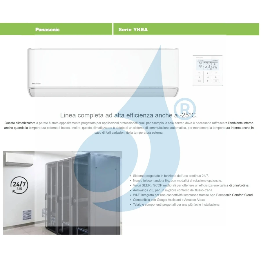 Climatizador Panasonic Mono Split CS-Z-YKEA WiFi 24000 Btu calefacción con bomba de calor de baja absorción de corriente en alto cálculo energético, excelente aire acondicionado silencioso y fiable, frío y calor con deshumidificador con control por cable de serie.